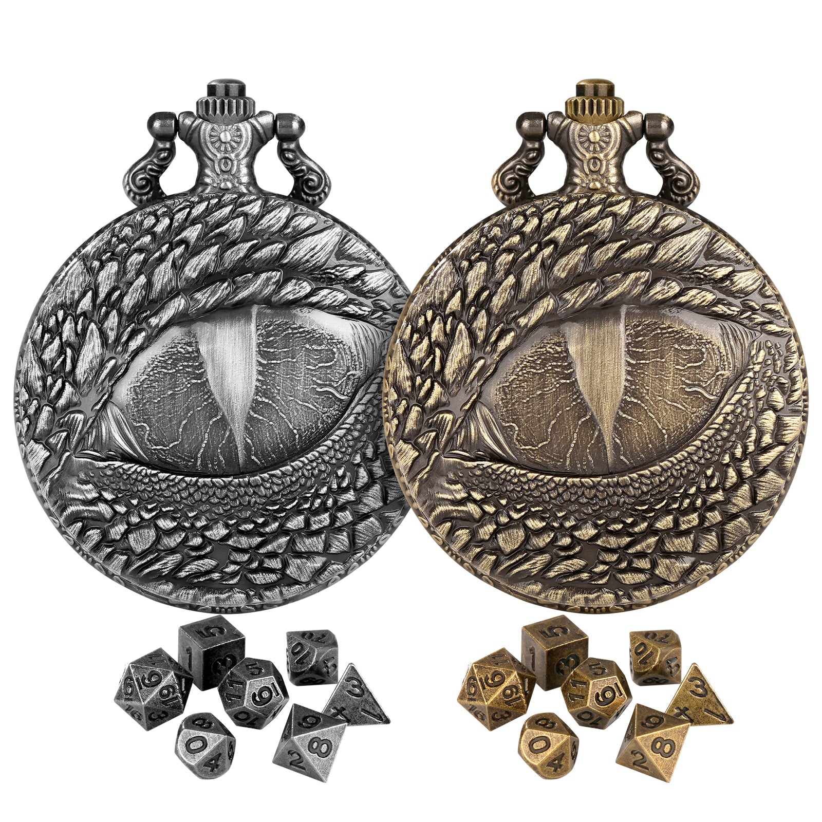 Retro Pocket Watch Metal Dice Set, fully forged from metal with excellent texture, contains 7 exquisite small metal dice. Innovatively integrated with wearable design, it can be used as a keychain or necklace for daily carrying. It combines practical board game functions, daily accessory uses and collectible value.